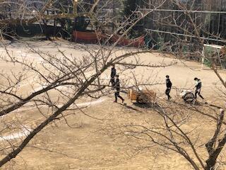 教員志望のボランティア大学生の皆さんも緊急事態宣言以降は念のため授業で生徒と対面するような場面には参加してもらっていませんが、今日は校庭にて凍結防止作業を頑張ってくれています。桜の蕾も少しづつ膨らんできました。