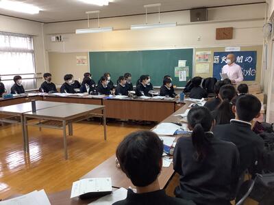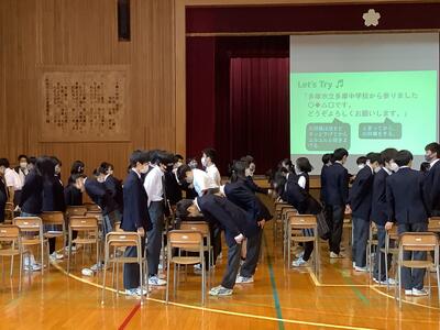 音楽科の森永先生からは、重心のかけ方、視線、緊張感の和らげ方(あくび)、息(声を壁に向かって投げる)、発表を楽しむこと、などのお話しがありました。