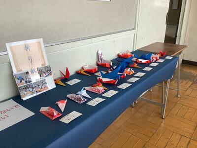 順番に校長室前に展示していた作品を土曜授業に合わせて1年生の