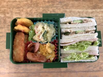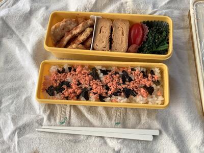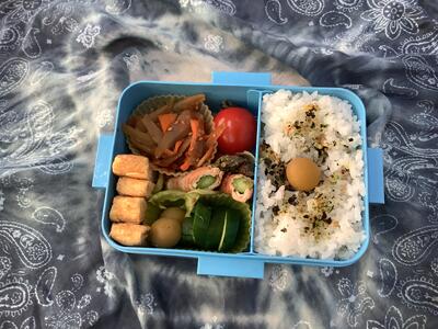 食育の一環として、1年生とF組の生徒は、「自力DE弁当」を作り持参しました。