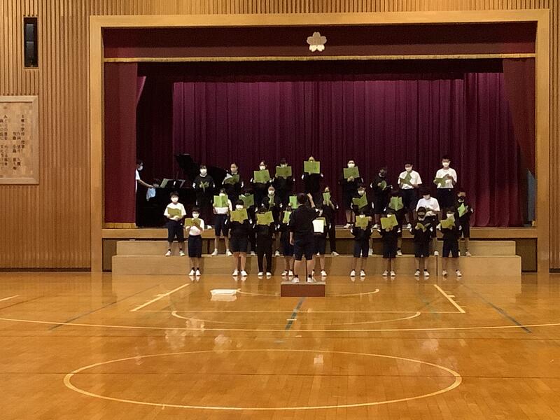 3年生から1年生まで、赤団•黄団•緑団•青団+F組が団ごとにそれぞれ自由曲を披露しました。