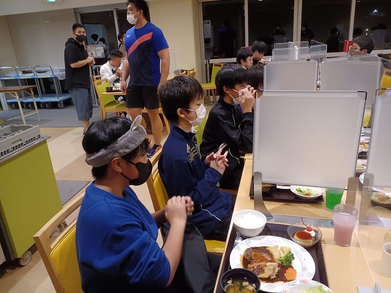 部屋にチェックインして、お風呂に入った後は、美味しい食事の時間です。十分体を動かしたので、みな食が進んでいました。