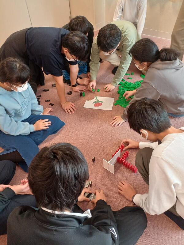 今日のメインの活動のドミノチャレンジが始まりました。各学年ごとに1つの作品を協力して作りあげます。どんな作品になるか楽しみです。