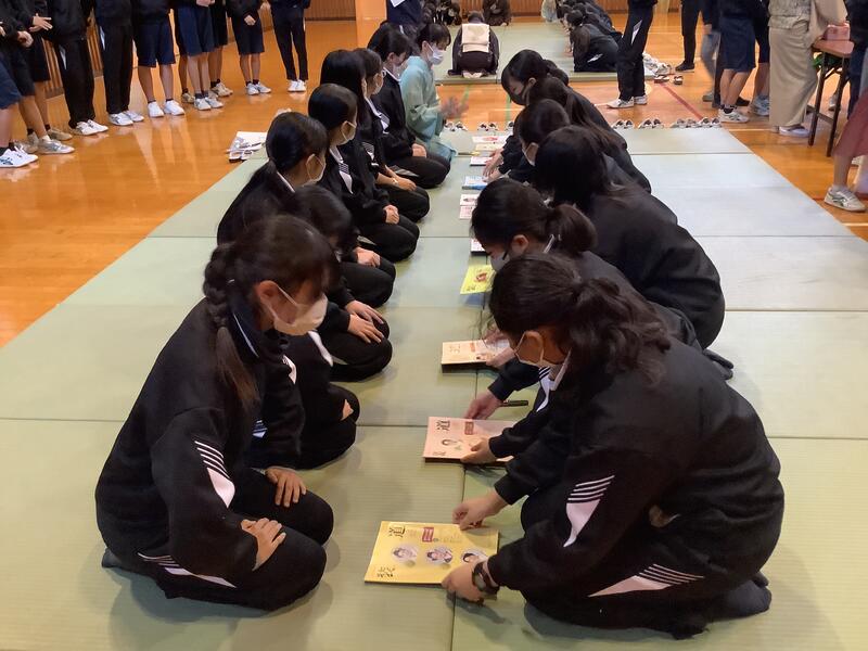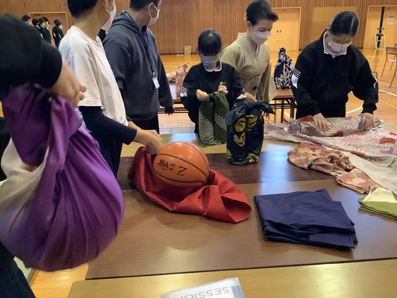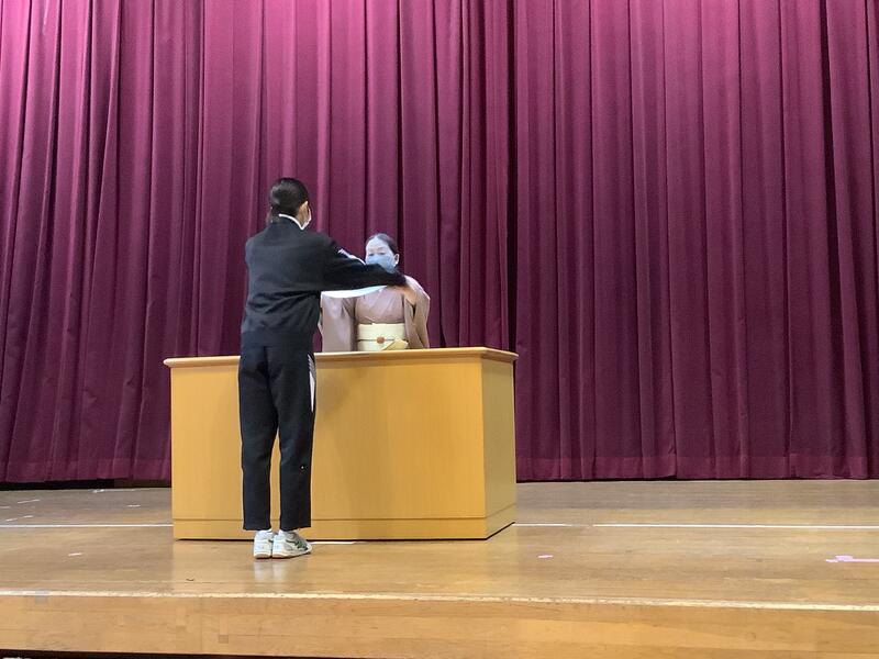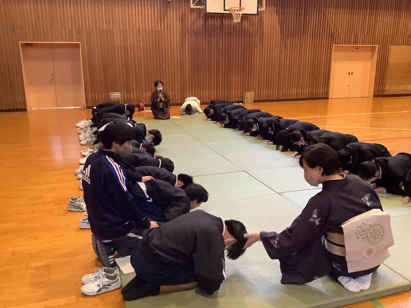 きもの教室の先生方をお招きして、2年生のマナー講座がスタートしました。講座は、全部で3回。今日は、礼法•物の受け渡し方•箸の使い方•風呂敷の包み方•賞状のもらい受けについて実習しました。次回は着物体験が予定され、そして最終日には、検定を受けることになっています。