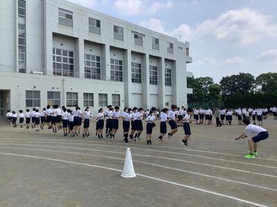 2年生の学年練習では、全員リレーと学年種目の台風の目の練習が行われました。3年生の練習ではムカデ競走の練習後に、体育的行事実行委員を中にして、3年生全員が大きな1つの輪を作り、実行委員長の呼びかけに「おー!!!」と元気よく応えていました。