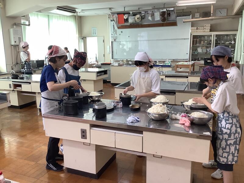 F組による火おこし体験と飯盒炊さんが行われました。着火した後は大きな炎になるところもあり、調節が大変でしたが、上手にご飯が炊けていました。