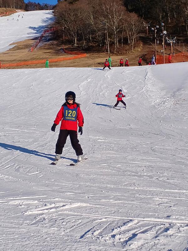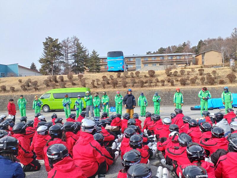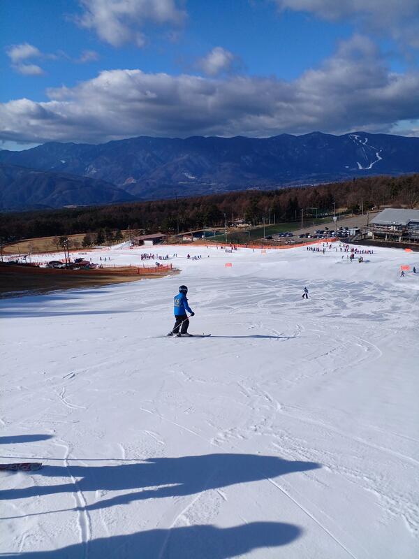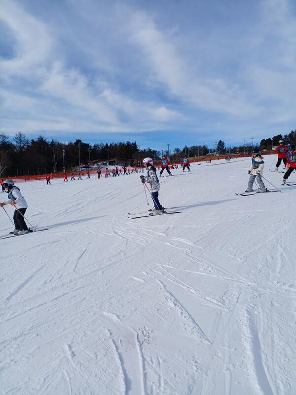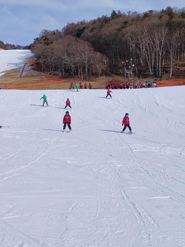 2日目のレッスンが終わりました。今日もあちこちから「すっごく楽しかった」「めっちゃ楽しかった」という声が聞こえてきました。午後は、上のゲレンデに行く班もいくつもありました。