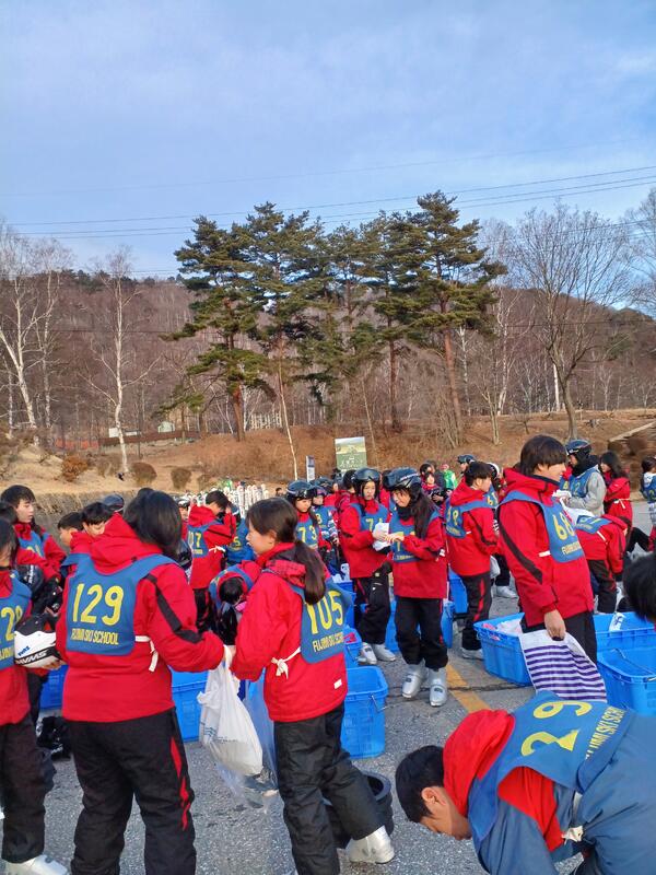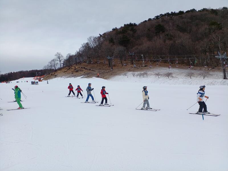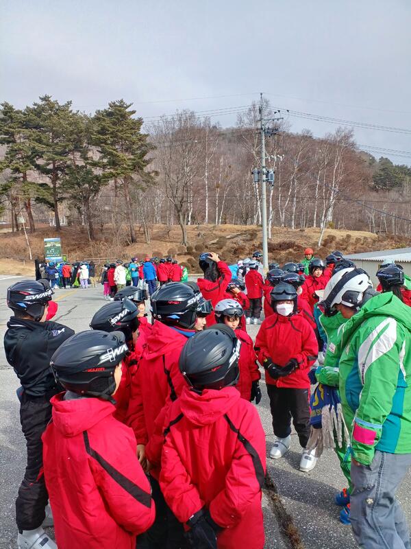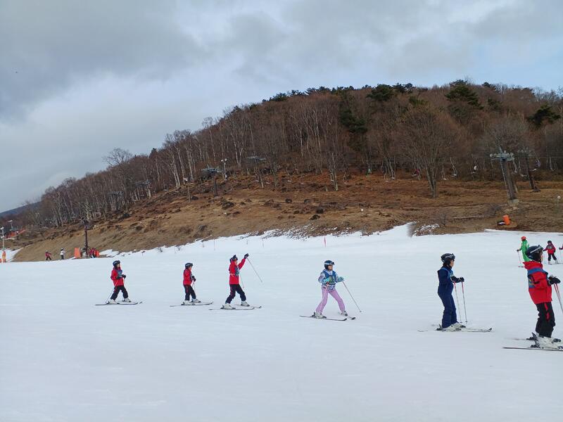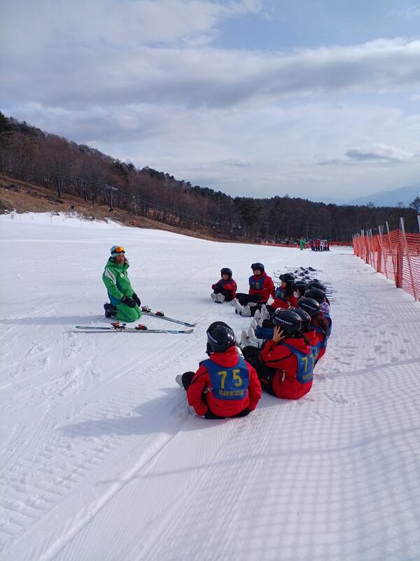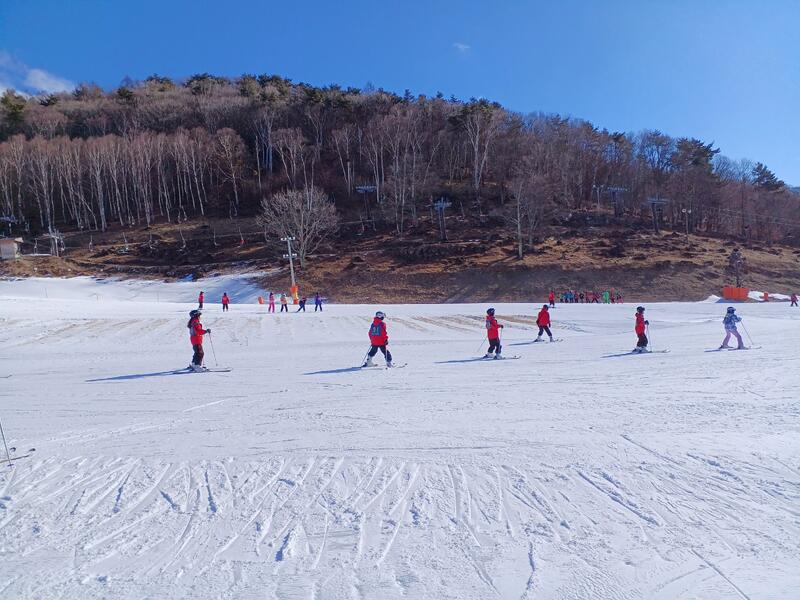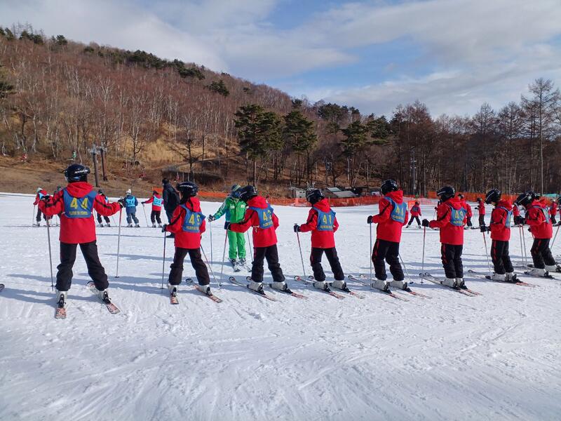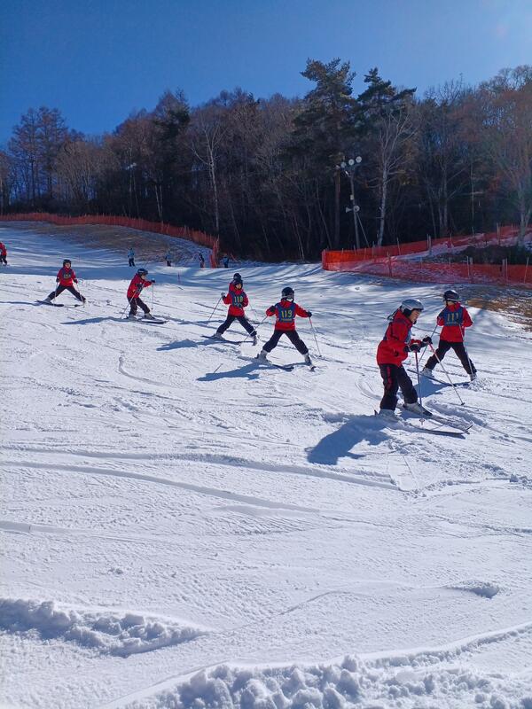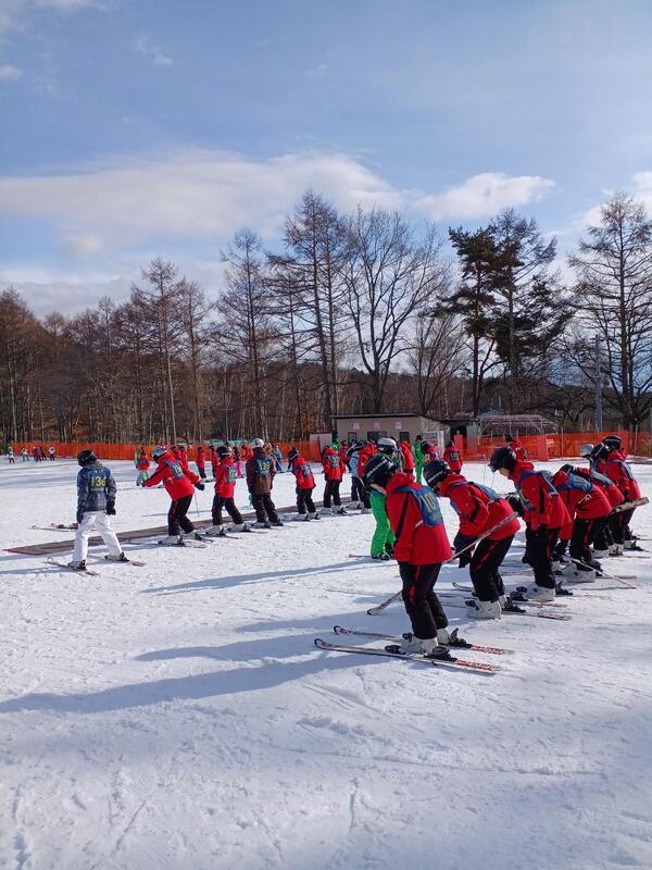 スキー教室の終了にあたり、閉校式を行いました。インストラクターの方からは、「楽しかった人」「スキーが格段に上達した人」という問いに対して、大きな声と共に、勢いよく手があがっていました。