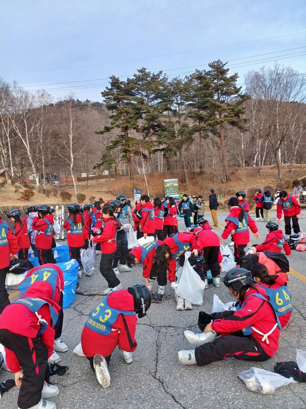 朝の会では、軽い体操と緒連絡を受けました。そのあとは、「来た時よりも美しく」のモットーのもと、施設内の清掃を行いました。