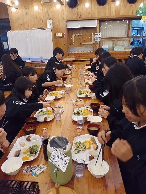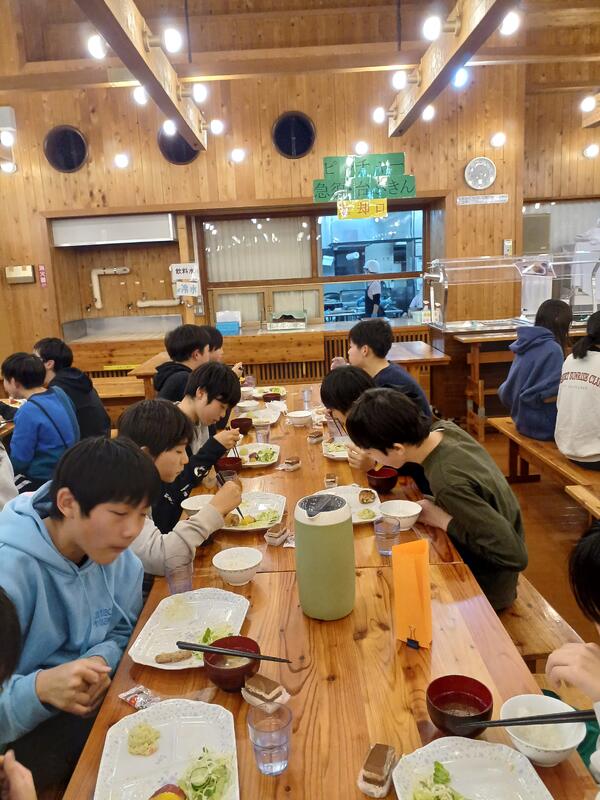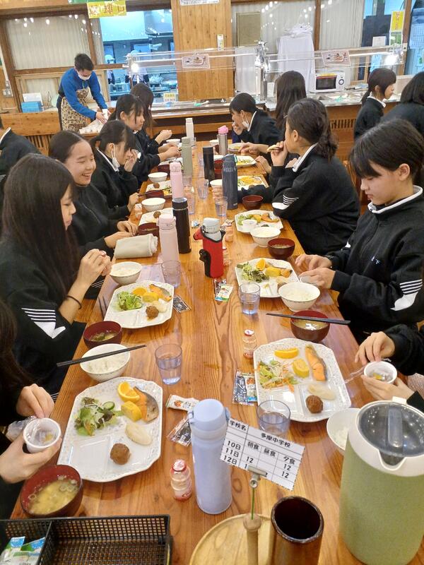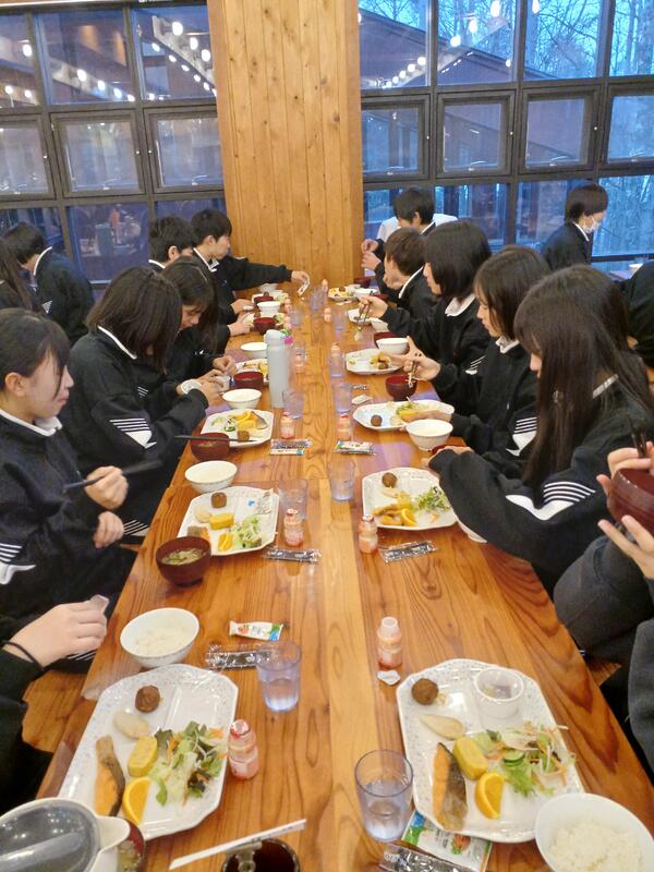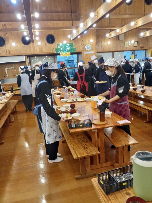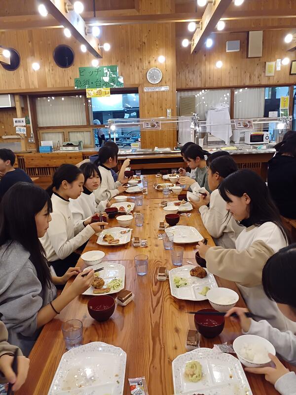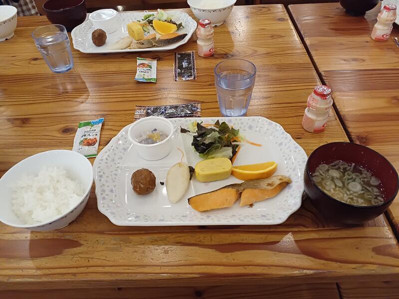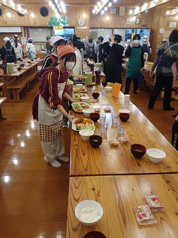 宿の食事はどれもとても美味しいものでした。今日もおかわりに何人も並びました。