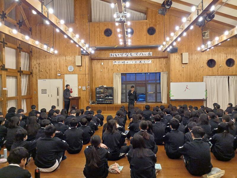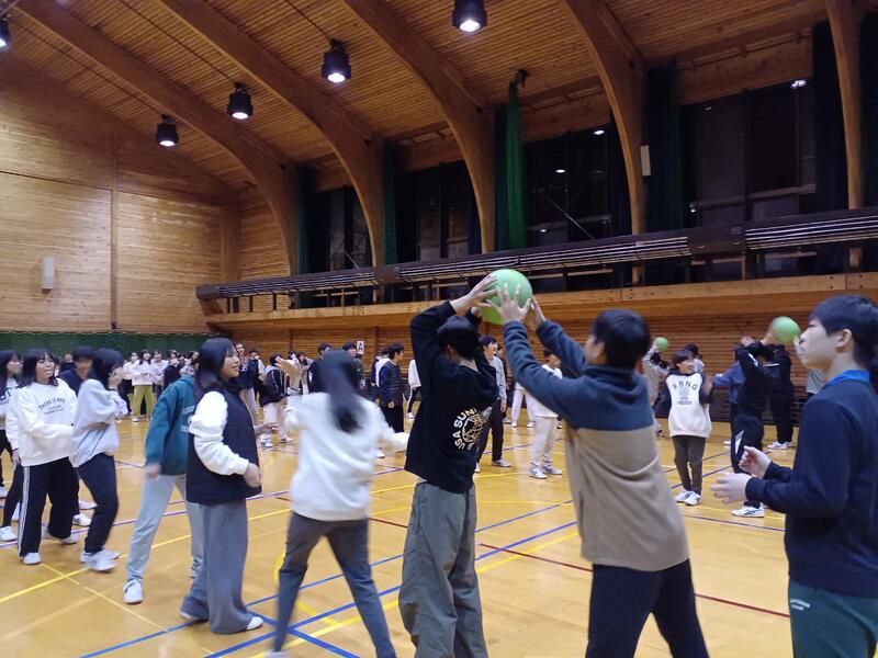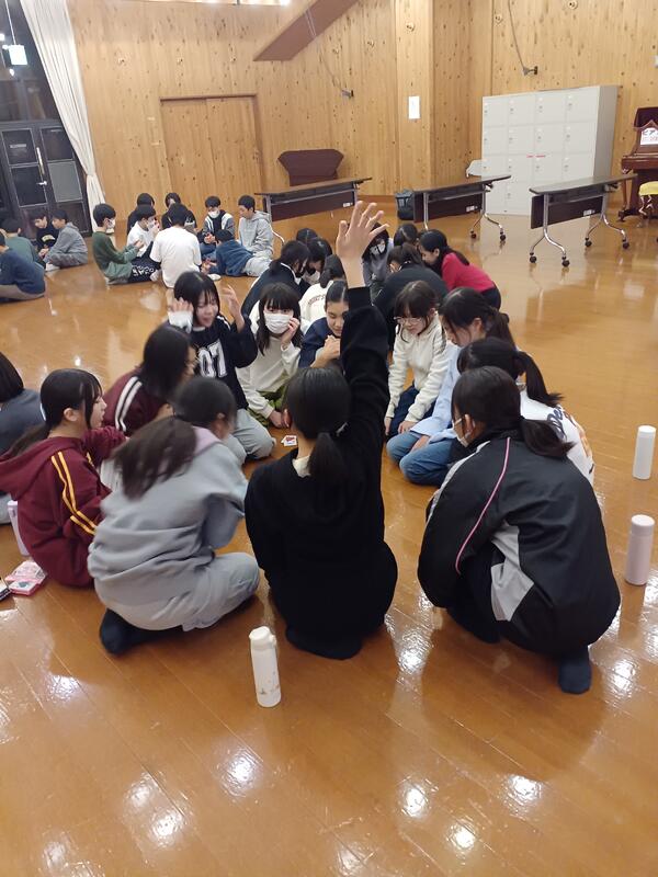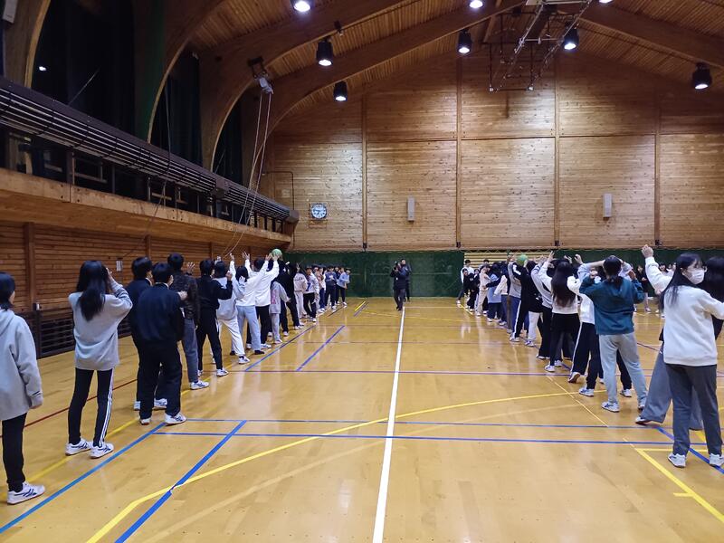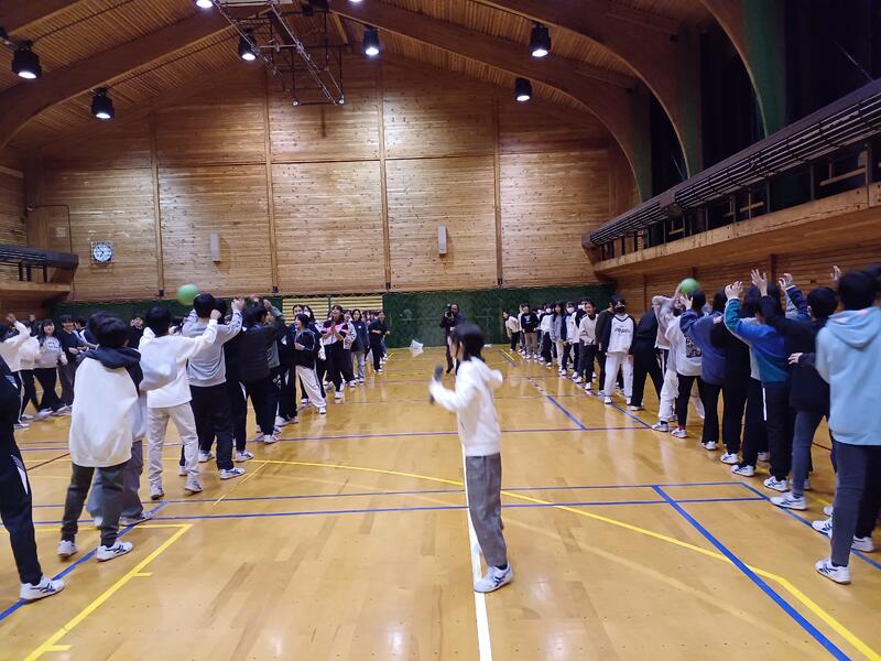 大きな体育館で、レクリエーションが行われました。実行委員(学級委員)が企画・運営して、ボール送りと○✕クイズで大いに盛り上がりました。本日最後の記事になります。