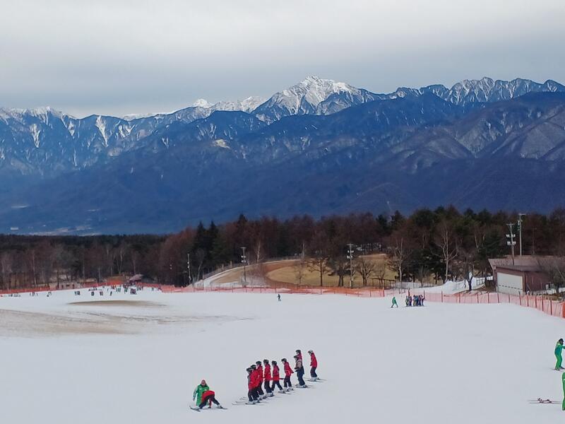 ゲレンデの最上部からは、向かいのスキー場や雪をかぶった山々がよく見えました。