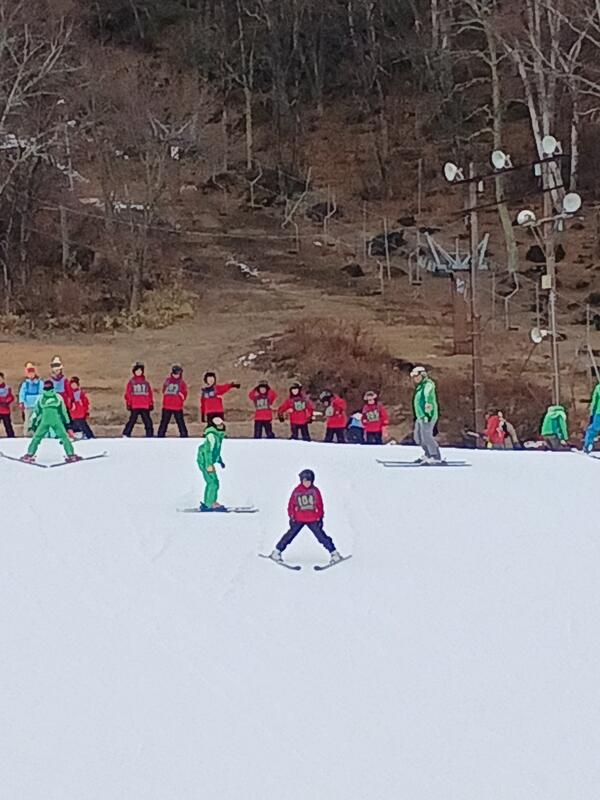 今日はほとんどの班が上のゲレンデまで行って滑ることができました。