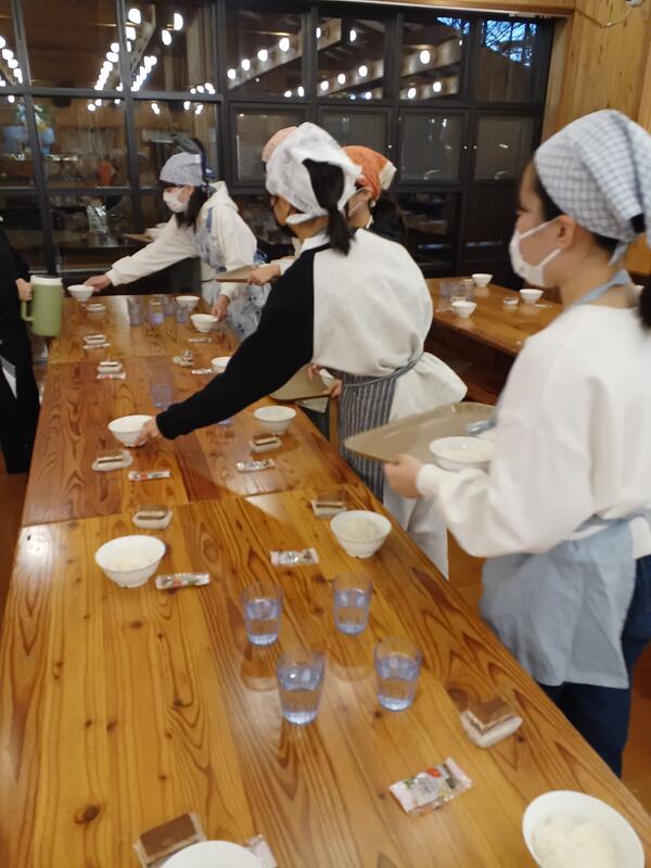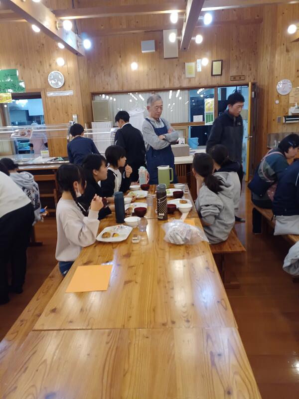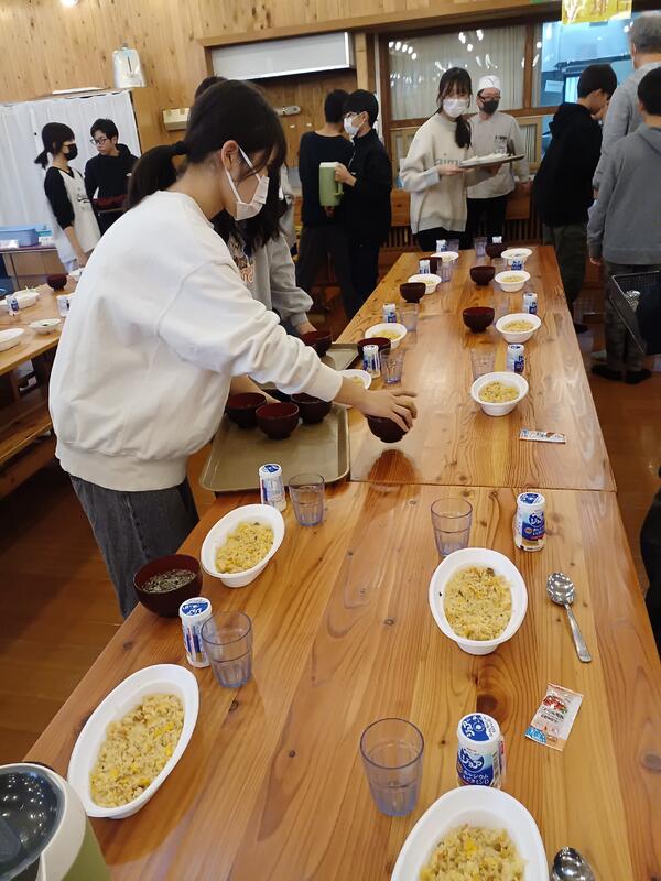 作業が一通り終わってお昼の休憩になりました。地域の方から豚汁と炊き込みご飯とお菓子をいただきました。