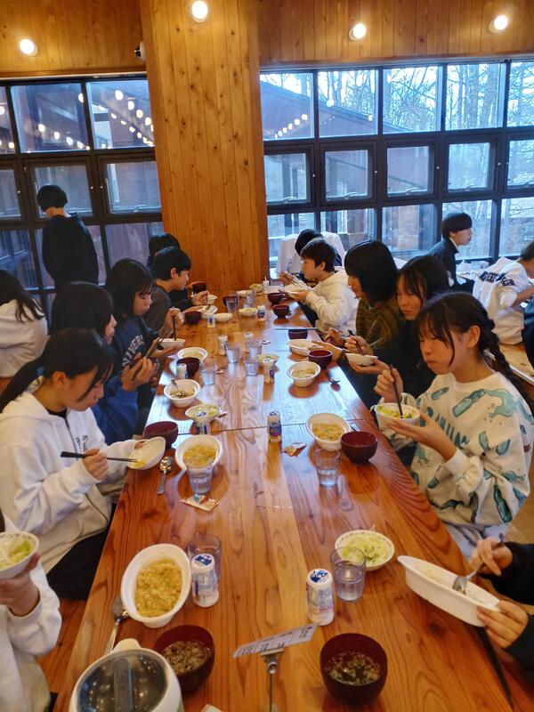 いつもの生活よりも早い夕食時間だと思いますが、運動をした後なので、みんな食欲旺盛でした。おかわりは、ジャンケンによる争奪戦になりました。