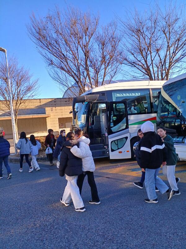 いい天気になりました。生徒は大きな荷物を持って続々と集まってきています。現地は、今日はくもり、明日と明後日は晴れの予報になっています。