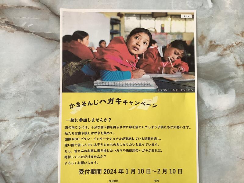 昨日の委員会の開催を受け、生徒会朝礼が行われました。各委員長から委員会で話し合われたことの報告などが伝えられました。生徒会本部からは、書き損じハガキキャンペーンへの協力依頼がありました。これは、恵泉女学園大学が中心に行っている取組に多摩市全体として協力していこうというものです。年賀状以外でも書き損じのハガキがあれば是非持ってきてもらえればと思います。