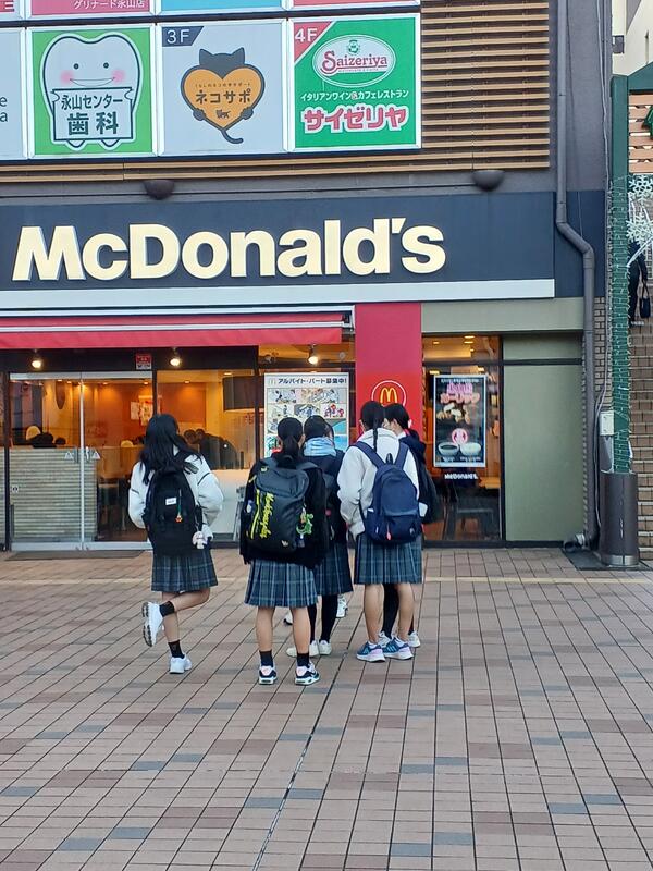 談合坂でトイレ休憩をとりました。あとわずかで学校到着です。