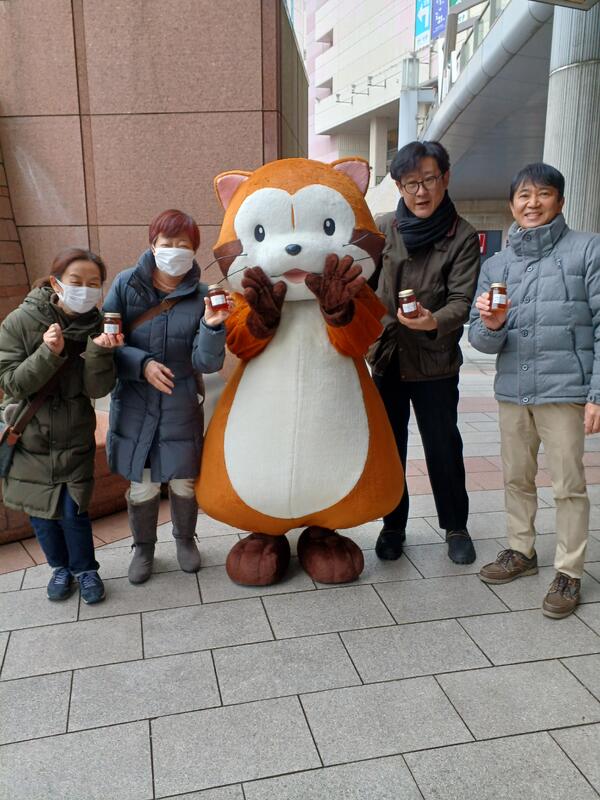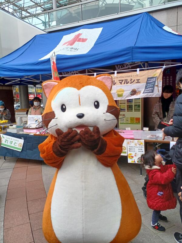 今日は、地域の方々で販売やスタンプラリーの受付を行ってくださっています。何とラスカルが来てくれました!
