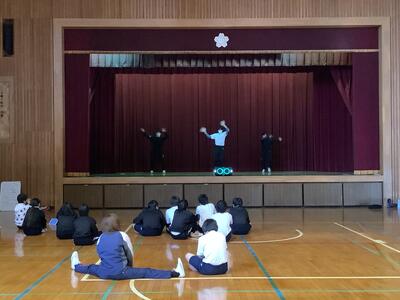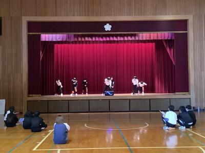 F組の保健体育の授業で行っていたダンスの発表会がありました。全部で4グループ。基本的な動きは同じですが、オープニングとエンディングはそれぞれにグループで考えた動きでの発表でした。どの生徒もしっかりと動きを覚えており感心しました。時間をかけて、きちんと練習していたことが窺えます。見ている人が思わず体を動かしてしまうような楽しい会になりました。