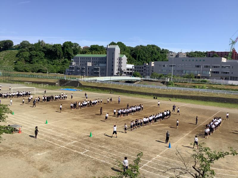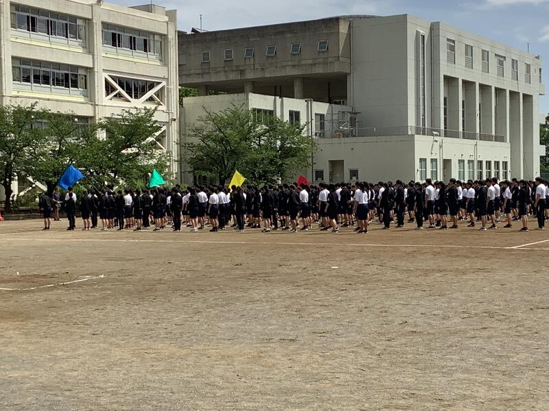 また、1校時には校庭で全校練習が行われました。全校生徒がブロック別に集合して、さまざまな確認や練習をしました。初めて参加する1年生もしっかりと動けていました。