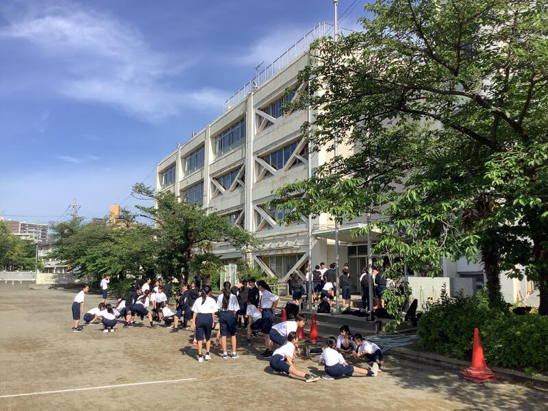 また、放課後練習では、1年生が全員リレー、3年生が大むかでや大縄跳びに取り組みました。生徒が主体となって進めることができました。
