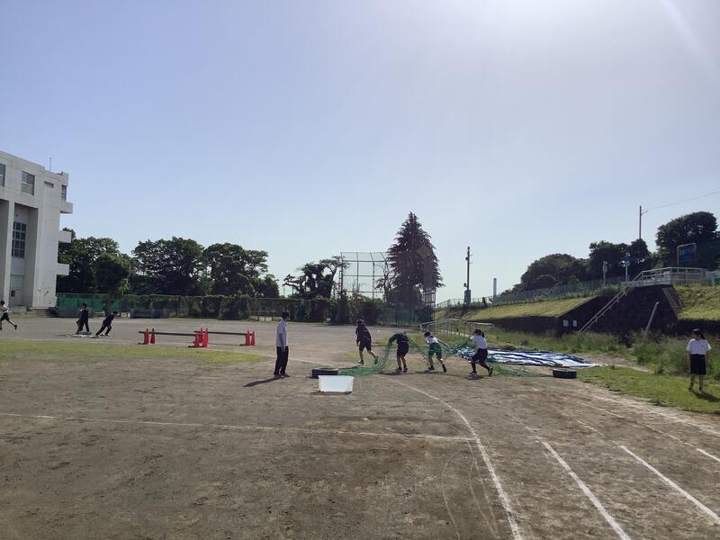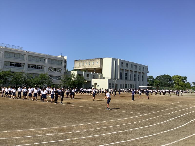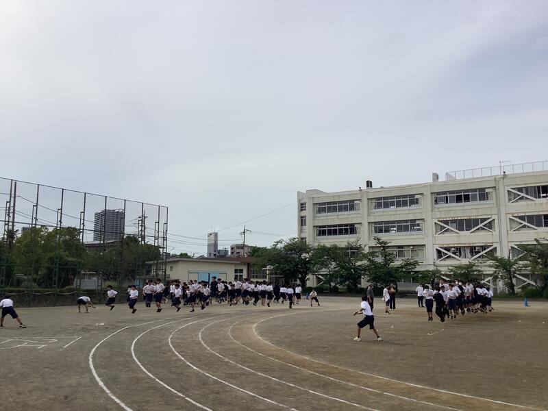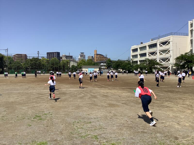 3年生の保健体育の授業では、全員リレーや大縄跳びの練習に取り組みました。生徒が主体となり、積極的に活動をしていました。
