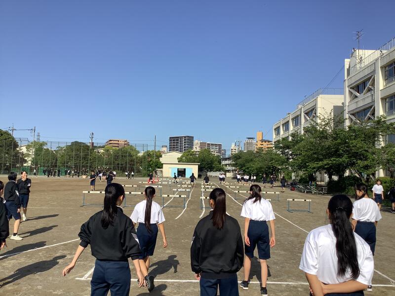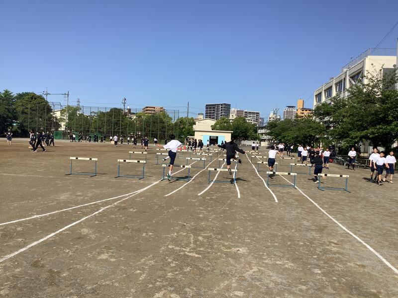 2年生の保健体育の授業では、陸上競技のハードル走が行われました。練習を繰り返すうちにスピードが上がり、ハードリングの技術も向上してきました。