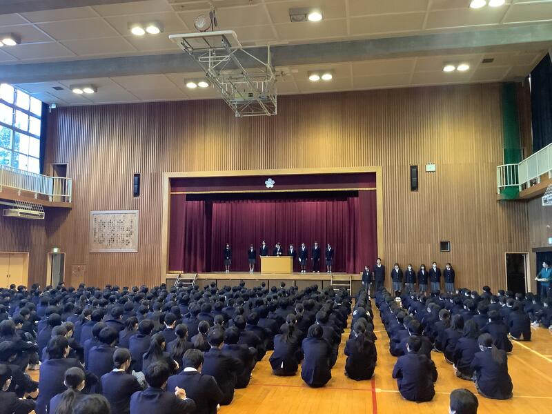 さて、今日は生徒会朝礼が行われました。生徒会長や各専門委員会委員長から活動報告が行われました。緊張感もある中で、しっかり話そうと頑張っていました。