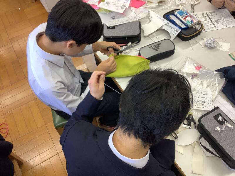 その3年生、今日の家庭科の授業では、ぬいぐるみの製作を行なっていました。6種類の動物のキャラクターの中から各自が選択し、手順書に従って作業を進めていました。友達同士でも教え合いながら、楽しそうに製作しており、手際の良さはさすが3年生と思いました。完成が楽しみです。