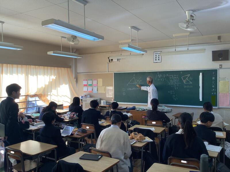 また、数学の授業では、相似の応用問題に挑戦していました。実生活と関連する問題を、数学的に考察し、解いていました。粘り強く、一生懸命に問題に取り組んでいました。