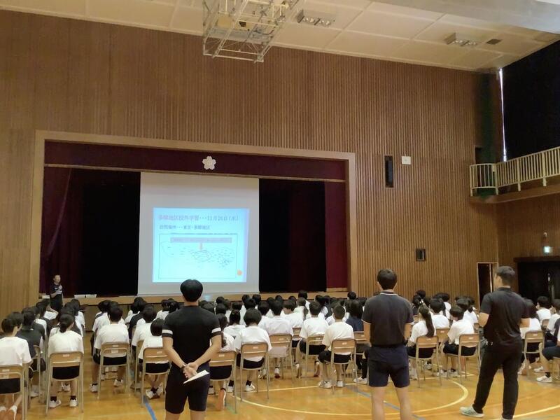 今日は多摩第一小学校と東寺方小学校の6年生を招いて多摩中トライアルを実施しました。生徒会や部長会が中心となり、企画や運営が行われました。生徒会では、学校生活や学校行事について寸劇やアンケートを取り入れながら紹介しました。また、部活動体験では小学生が各自、選択した部活に分かれて体験を行いました。上級生が丁寧に教えていました。