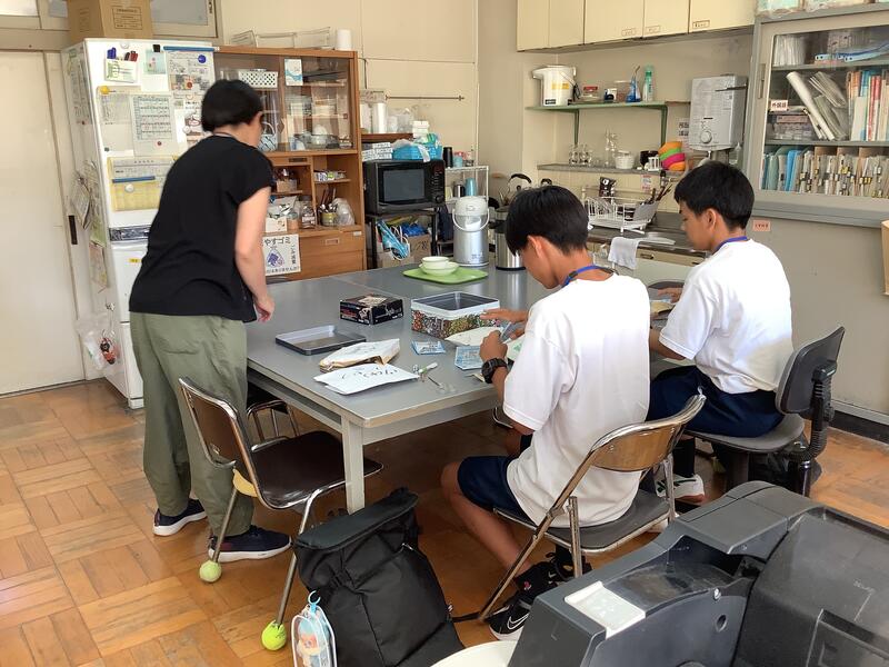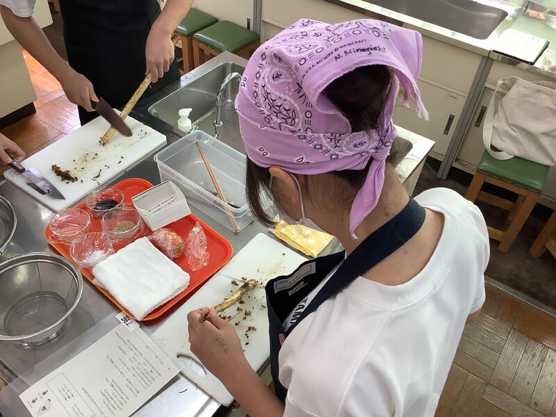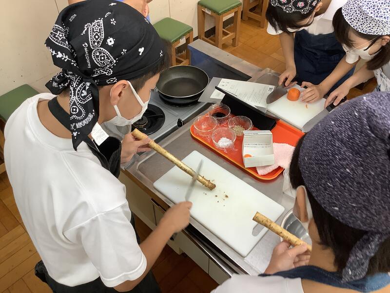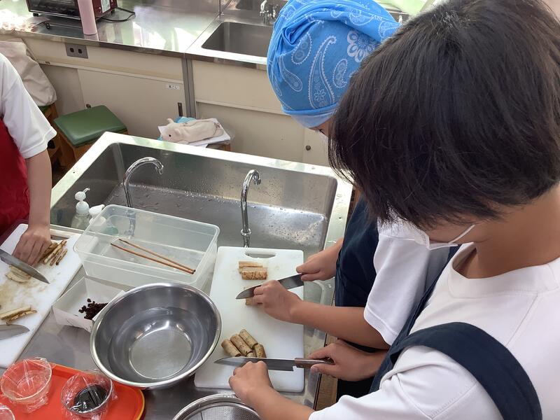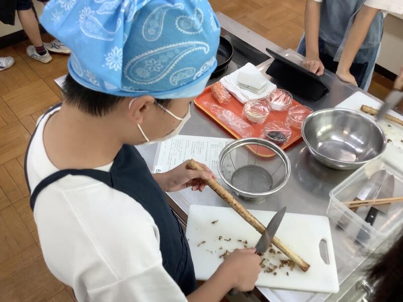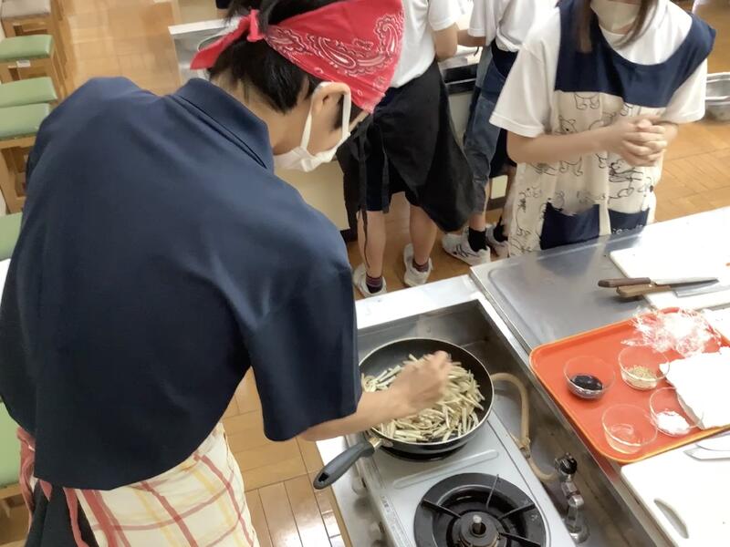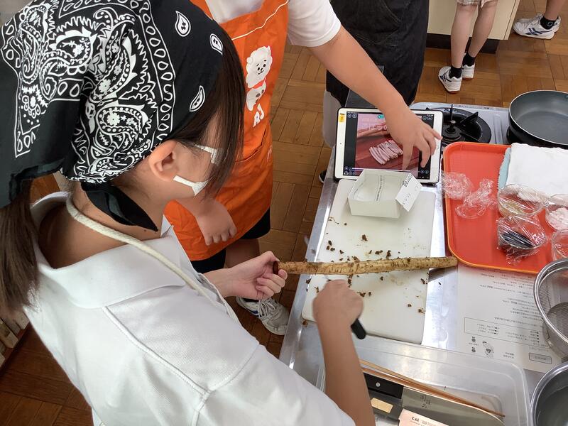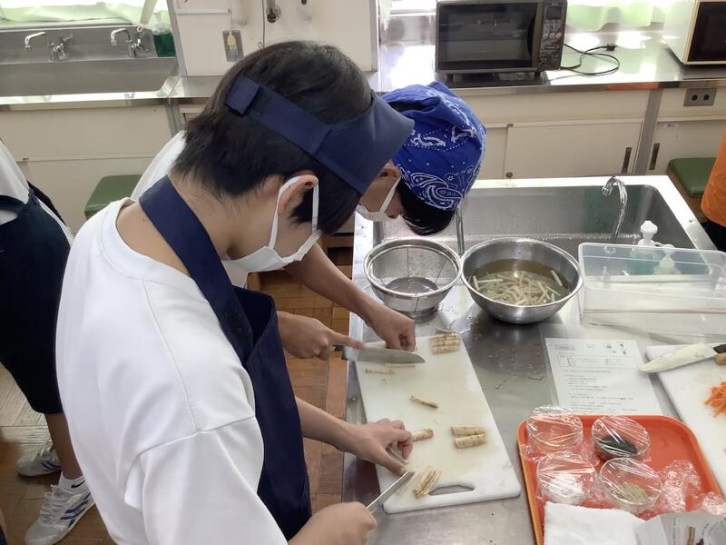 さて、3年生の家庭科の授業では調理実習が行われていました。手順を案内する動画や補助プリントも参考にしながら、きんぴらごぼうを調理していました。友達同士でも教えあったり協力したりしながら、楽しく一生懸命に取り組んいました。試食はどうだったかな。