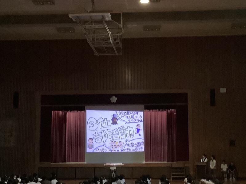 また、今朝の全校朝礼では、自治活動の大切さなどの話があり、その後、テニス部、陸上競技部、バレーボール部の表彰も行われました。おめでとうございます。