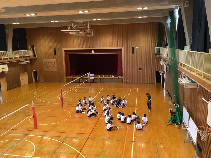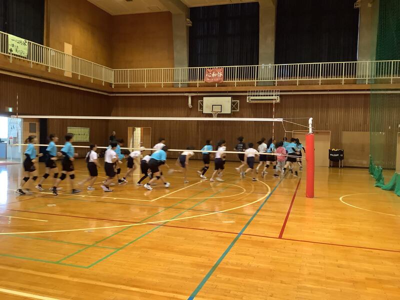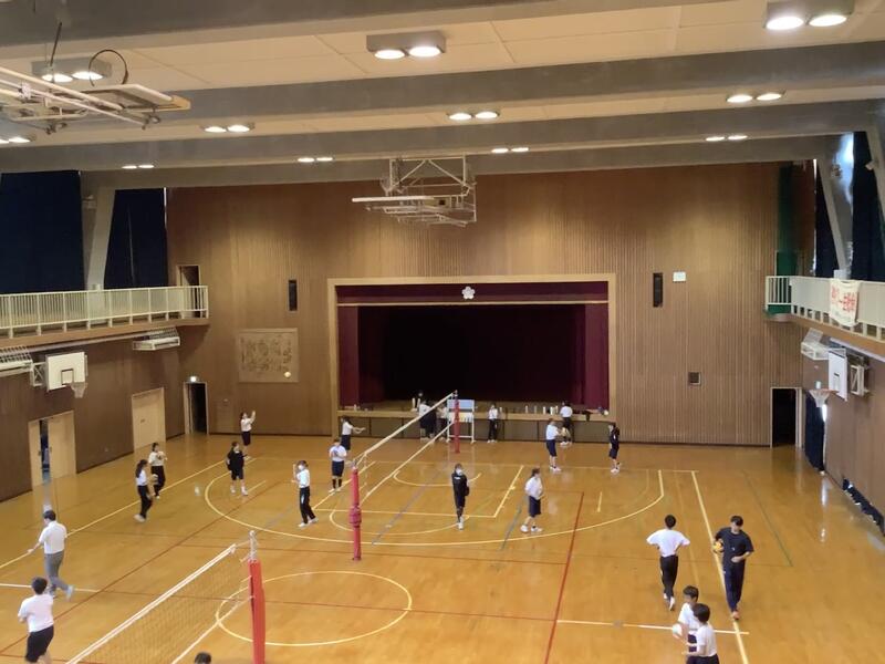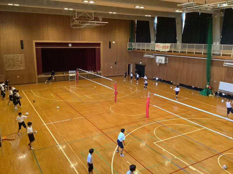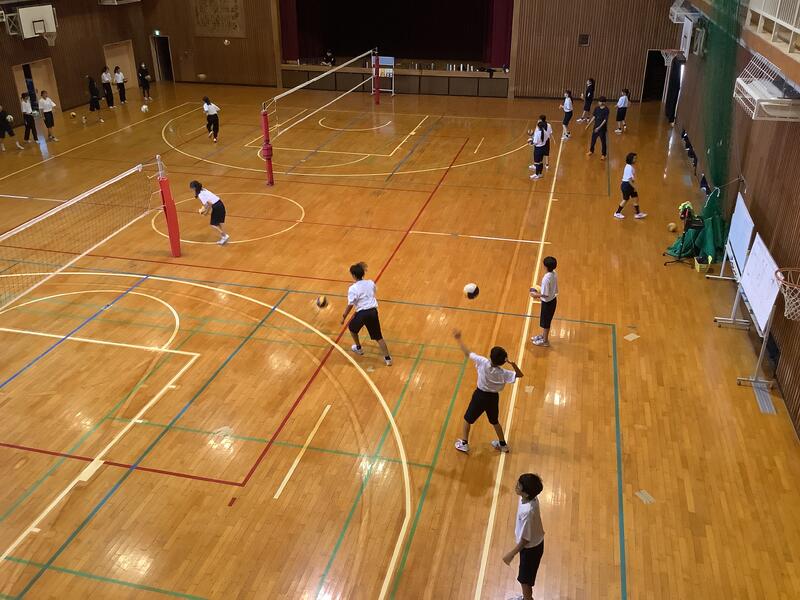 体育館では1年生が保健体育の授業としてバレーボールに取り組んでいました。ペア練習やサーブ練習などに一生懸命に取り組んでいました。