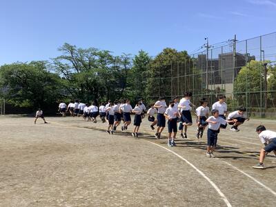 27日の体育祭に向けて昨日から学年練習が始まりました。昨日は3年生、今日は1年生と2年生でした。種目もほぼコロナ前に戻り、声出し応援もできるようになって、当日は大いに盛り上がることを予感させてくれる練習風景でした。写真は2年生の学年練習の様子です。