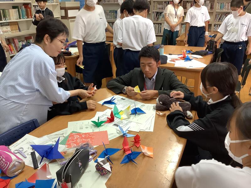 3年生の授業です。理科ではタブレットを利用して問題作成を、社会では新聞資料で原爆についての学習を行っていました。