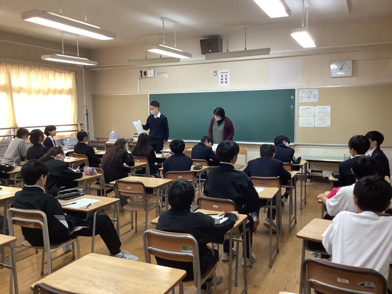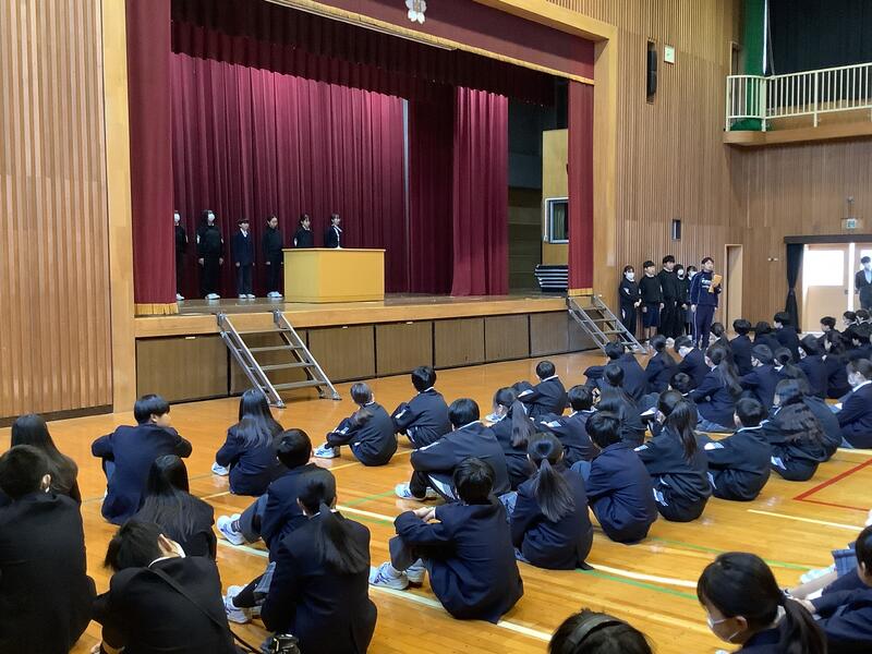 今学期最後の生徒会朝礼が行われました。各委員会の委員長から一斉委員会で話し合われたことの報告や全校への依頼などがありました。生徒は退場時まで静かに整然と行動できていました。体育館から教室に戻る際には、1•2学期の間にたまった落とし物の最終確認がありました(いつもは、2階廊下の遺失物用の展示スペースに入れてあります。先週からこれまでに改めて2度確認する機会を設けましたが、今日はそれでも落とし主が現れなかった物を展示し、確認してもらいました)。