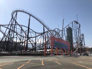 富士山がくっきり見える園内は空いていますが、高飛車は160分待ち。マスクを付けて消毒もよくして、間隔を開けて並んで粘る生徒と、すいているアトラクションで数をこなす生徒と二手に分かれて楽しんでいます。来られて良かった!