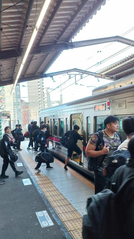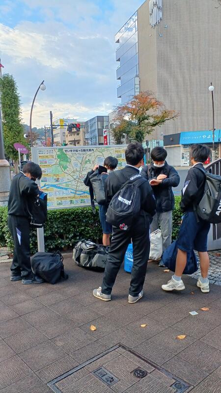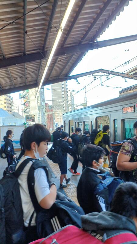 高尾ワクワクビレッジでの宿泊学習がスタートしました。まずは、聖蹟桜ヶ丘の駅に班ごとに集合して、それぞれ電車で向かいます。