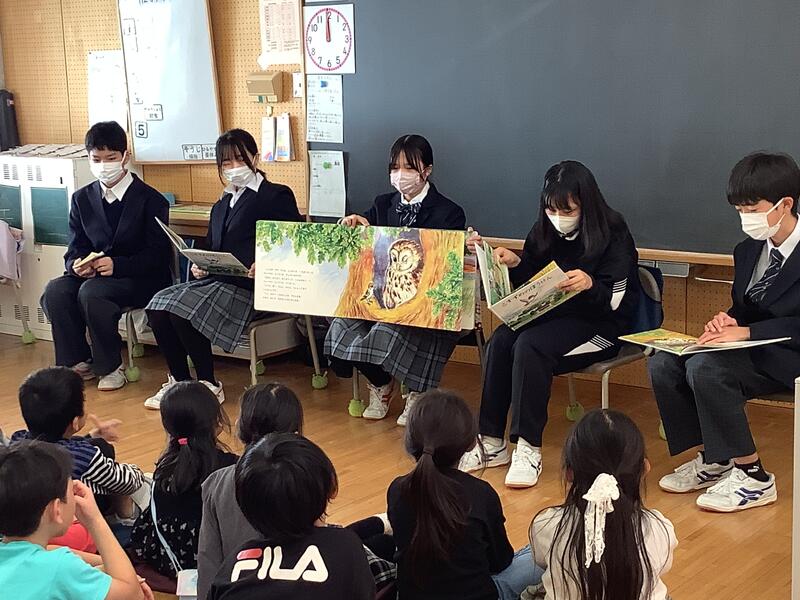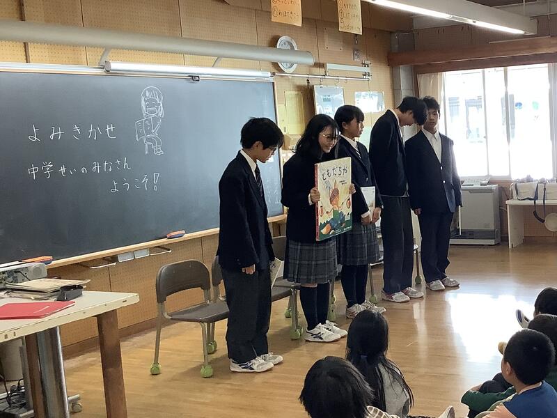 先週の7日に図書委員会の1•2年生が第一小学校の1年生に向けて絵本の読み聞かせを行いました。当日は、これまでの練習の成果が発揮され、大きな声で分かりやすく伝えることができました。どのクラスでもとても静かに集中して聞き入ってくれていました。