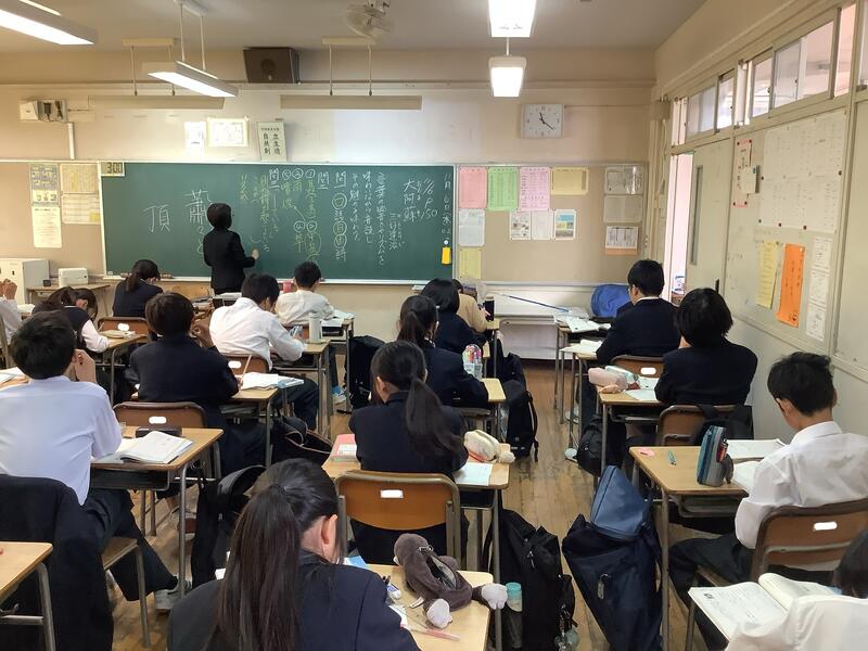 さて、1年生の国語の授業では、「音読を楽しもう」の授業が行われていました。「大阿蘇」の文章の中の言葉を手掛かりにして、情景をイメージし、音読の工夫につなげていく学習でした。生徒の皆さんも、詩が伝えていることを積極的に理解しようとたくさん発言をしていました。