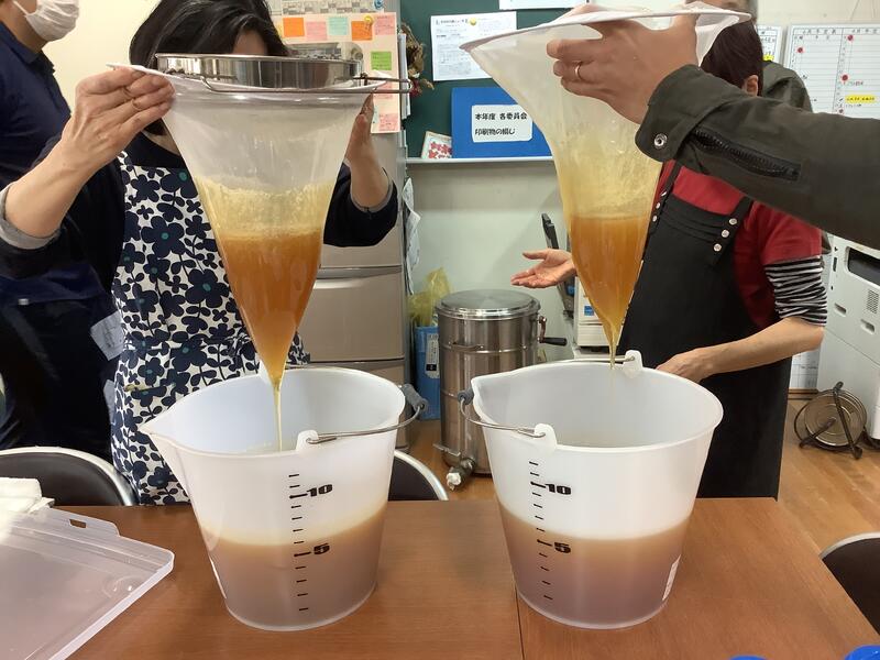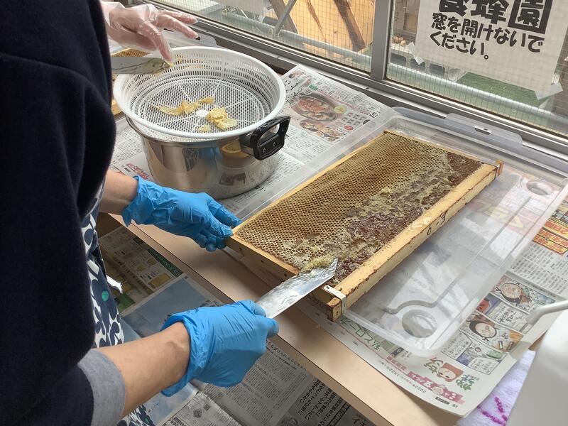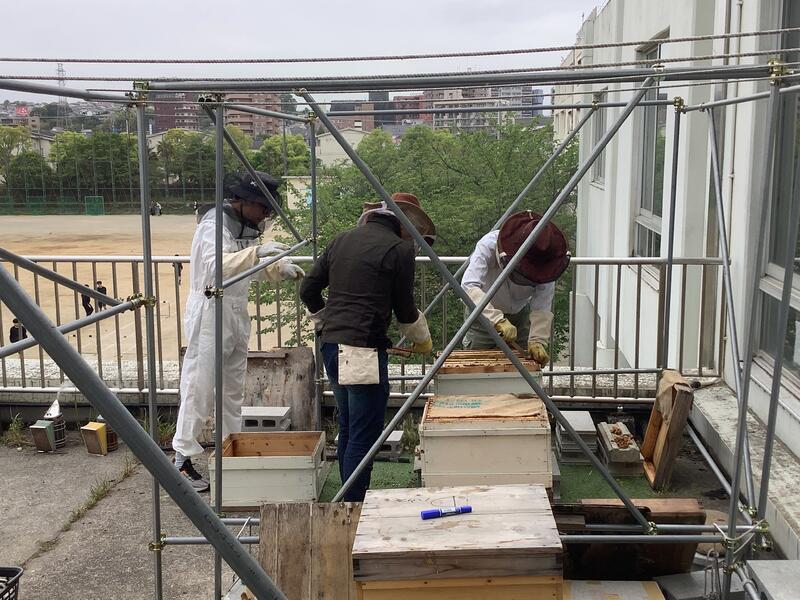 養蜂活動 採蜜 投稿日時 : 2023/04/24 多摩中学校管理者 22日(土)に今年最初の採蜜が行われました。養蜂活動は、チャレンジ部を中心に行われていますが、今回は、日程の都合上、生徒が参加できなかったため、地域学校協働本部の方々を中心に地域の方々のお手伝いをいただいての採蜜となりました。今年は暖かい日が多くなっているせいか、昨年度の同時期よりも多くの蜜が搾れました。今年も、7月1日2日のあさがお市などで、瓶詰めしたハチミツを生徒自身が店頭に立って販売する予定です。 {{options.likeCount}} {{options.likeCount}}