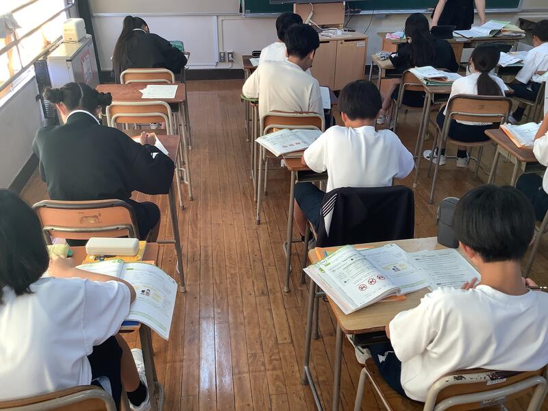 さて、1年生の英語の授業では自分の学校について英文で紹介する活動が行われていました。学習した英語を実践的に活かす取り組みであり、意義があります。生徒の皆さんは何をどのように紹介しようか、考えながら進めていました。