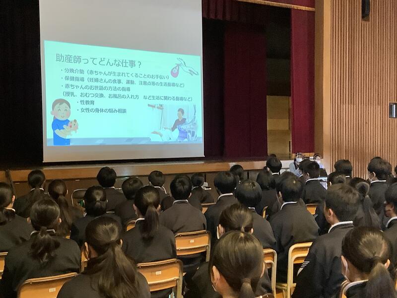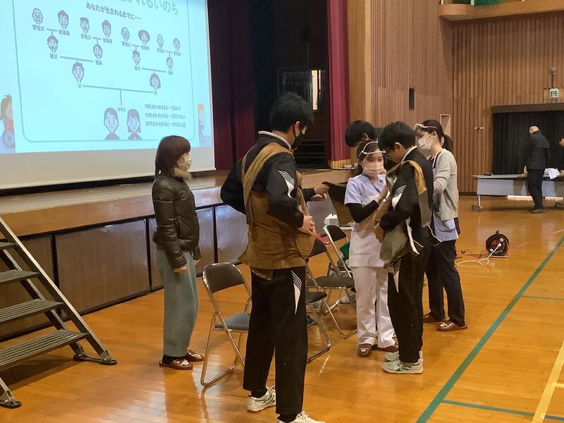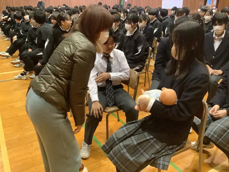 3年生 命の授業 投稿日時 : 2024/03/07 多摩中学校管理者 3年生の総合的な学習の時間に、永山の日医大から助産師さんと小児科医の方をお招きして、命の授業を実施しました。パワーポイントによる講義にプラスして、妊婦体験ジャケットの着用をしたり、実際の乳児の重さを再現した赤ちゃんの人形を使って、抱っこ体験を行いました。 {{options.likeCount}} {{options.likeCount}}