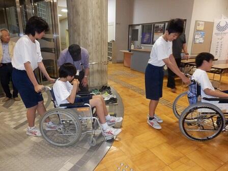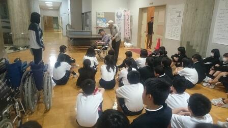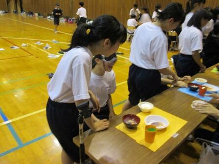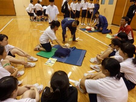 体験活動では、障がい者・高齢者疑似体験、車椅子体験をはじめ、AEDを使用した救命救急訓練、煙体験を行いました。