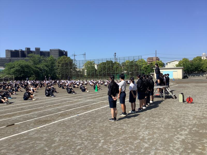 12日(金)の放課後に体育的行事実行委員会が開かれ、開•閉会式の練習が行われました。入場行進やラジオ体操の隊形づくり、選手宣誓の練習などを真剣な態度で行っていました。