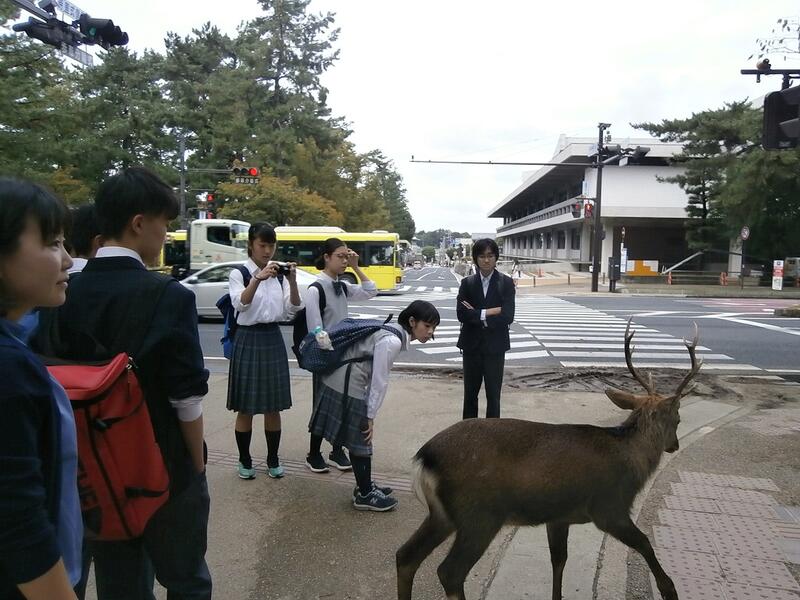 東京を出るときは雨でしたが、奈良で晴れ間も広がり、天気も恵まれました。班行動も学年全体の集合する姿勢もりっぱにでき、調子を崩す人もほとんどなく、修学旅行初日は無事に終了しました。