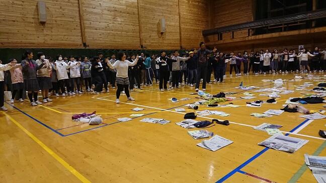 実習後、宿舎に戻り夕食をとってから、宿舎の体育館でレクリエーション大会を行い、趣向を凝らした各クラスの出し物で大いに盛り上がりました。移動教室のかなり前から、クラスで出し物の内容を考え、脚本を作り、準備と練習に力をかけてきただけあり、どのクラスも工夫を凝らし、とても楽しめる内容でした。