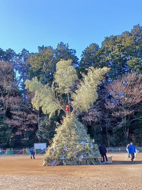 東寺方小学校で、どんど焼きが行われました。鼓桜さんの勇壮な太鼓演奏のもと、勢いよく燃え上がりました。